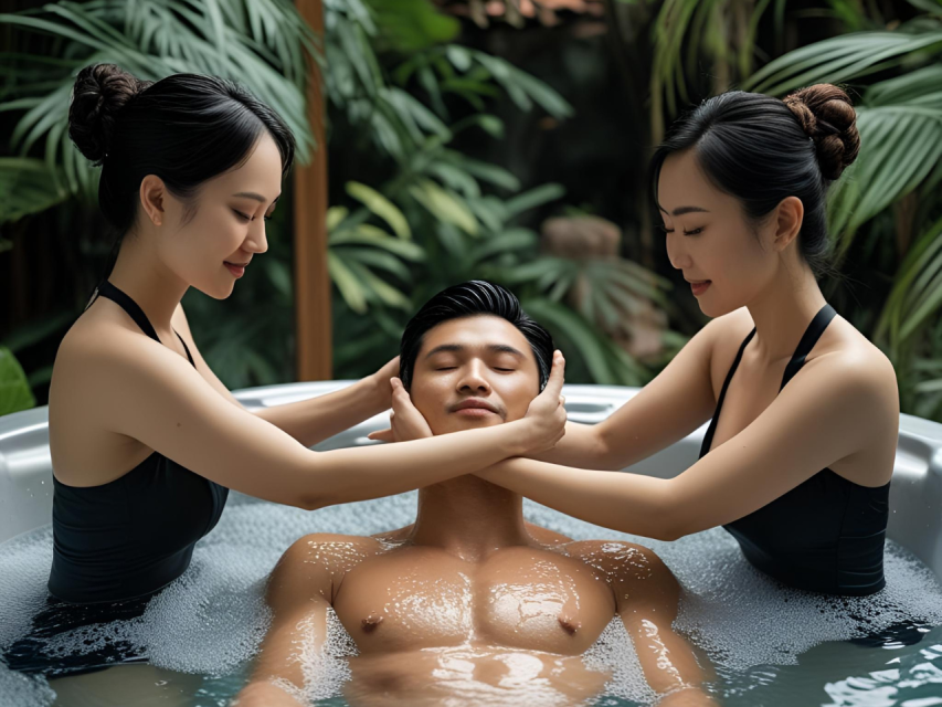 Double the relaxation with two expert therapists working in perfect harmony, followed by a rejuvenating jacuzzi bath. A premium spa experience to melt away stress.